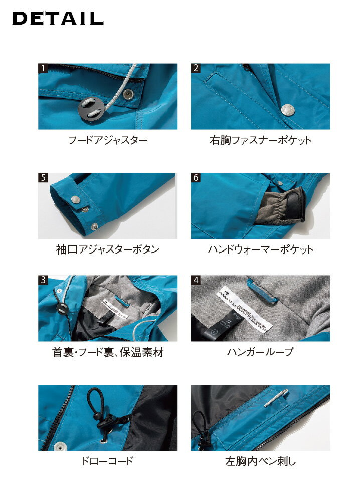 >>XS-XLサイズのご購入はこちらから<< 商品詳細 ■品名・品番 マウンテンパーカー dimo D614 ■素材 素材:タフレックス 混率:ポリエステル100% ■機能・特長 撥水加工 イージーケア 帯電防止 首裏・フード裏保温素材 ハンドウォーマーポケット付き ■着用シーズン 秋冬/オールシーズン ■メーカー・ブランド 中塚被服・NAKATSUKA(ナカツカ)/dimo(ディモ) お届け情報 メーカーお取り寄せの商品です。