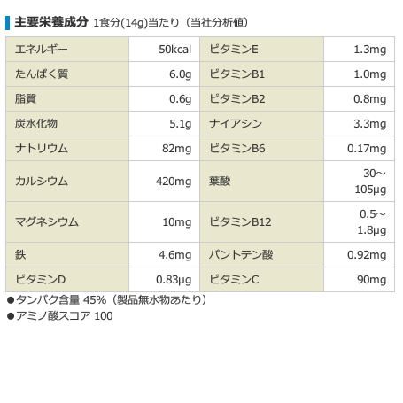 ■おすすめの摂取方法(目安)保健機能食品(栄養機能食品)として、1日2食(約28g)を目安に、牛乳または水などでお召上がりください。